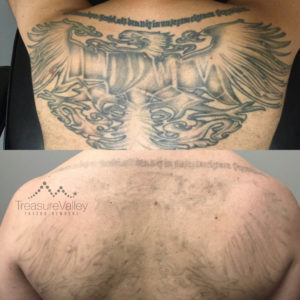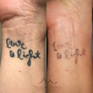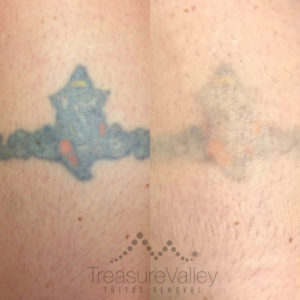 Many clients choose to have a few tattoo removal treatments to fade their tattoo rather than fully removing it. Fading an existing or unfinished tattoo prior to a cover-up will allow you more freedom to choose a new design to be placed over the old tattoo. The following are examples tattoos we have faded that could easily be covered.